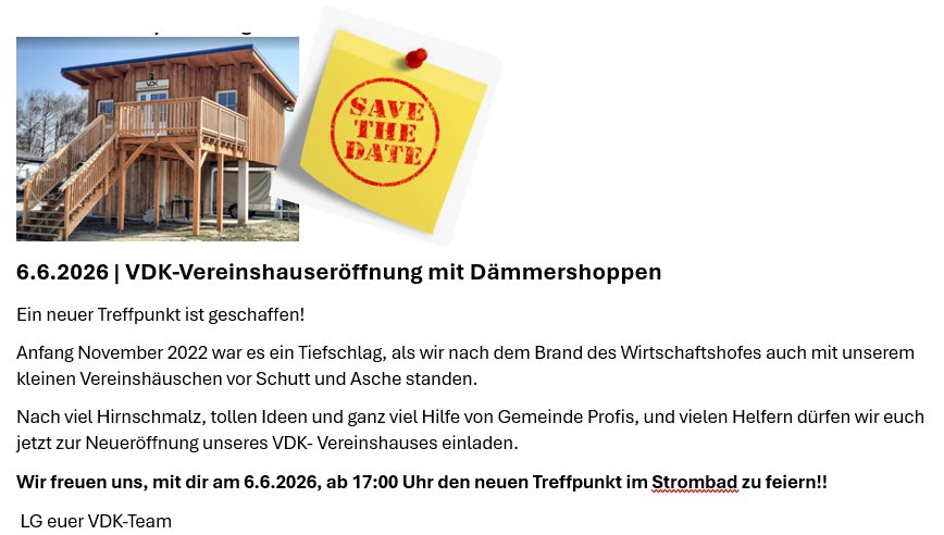 Da uns immer wieder Anfragen erreichen, möchten wir darauf hinweisen, dass der VDK keine Anmeldeliste für Interessenten führt und auch keine Informationen erhält, ob und welche Häuser zum Verkauf stehen.